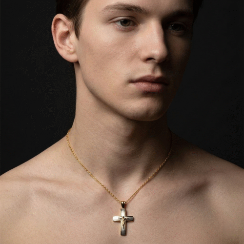 Ανδρικός Σταυρός σε Χρυσό και Λευκόχρυσο Κ14