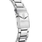 Υπέροχο ρολόι της Festina σε μασίφ ατσάλι με βιδωτή κορώνα, κρύσταλο ζαφείρι ,ημέρα/ημερομηνία .